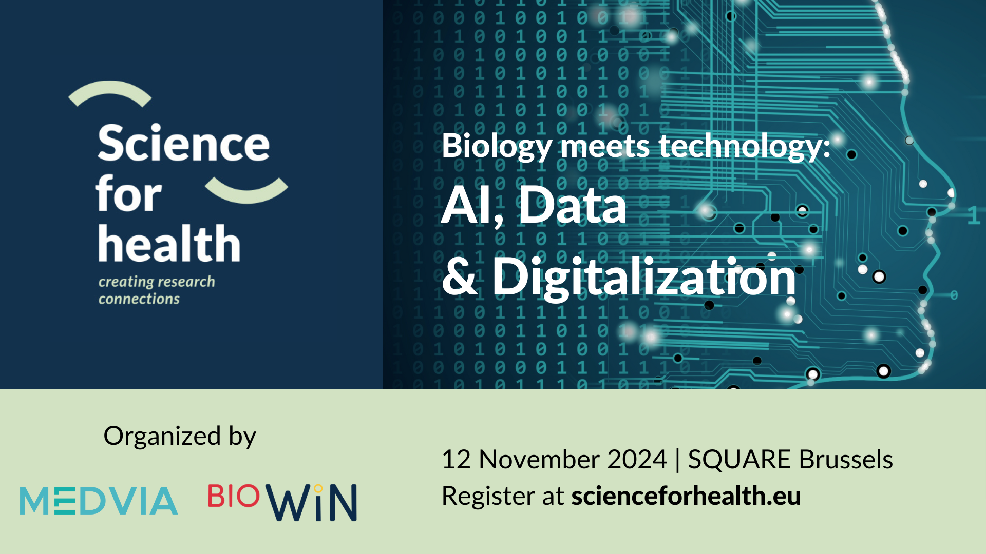 Science for Health explores innovation at the interface of biology and technology, with a spotlight on Belgium’s involvement and contributions. This event brings together academics, industry leaders and policy makers to promote out-of-the-box thinking, tackle complex challenges, and spark new collaborations. The 2024 edition will focus on AI, Data and Digitalization, with discussions around how these tools can accelerate innovation in drug discovery & development and prevention & diagnostics.